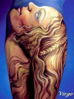 Wonderfull this body painting in girl. Nice and beautifull Virgo simbol. Great, look in real Face and hair painting picture